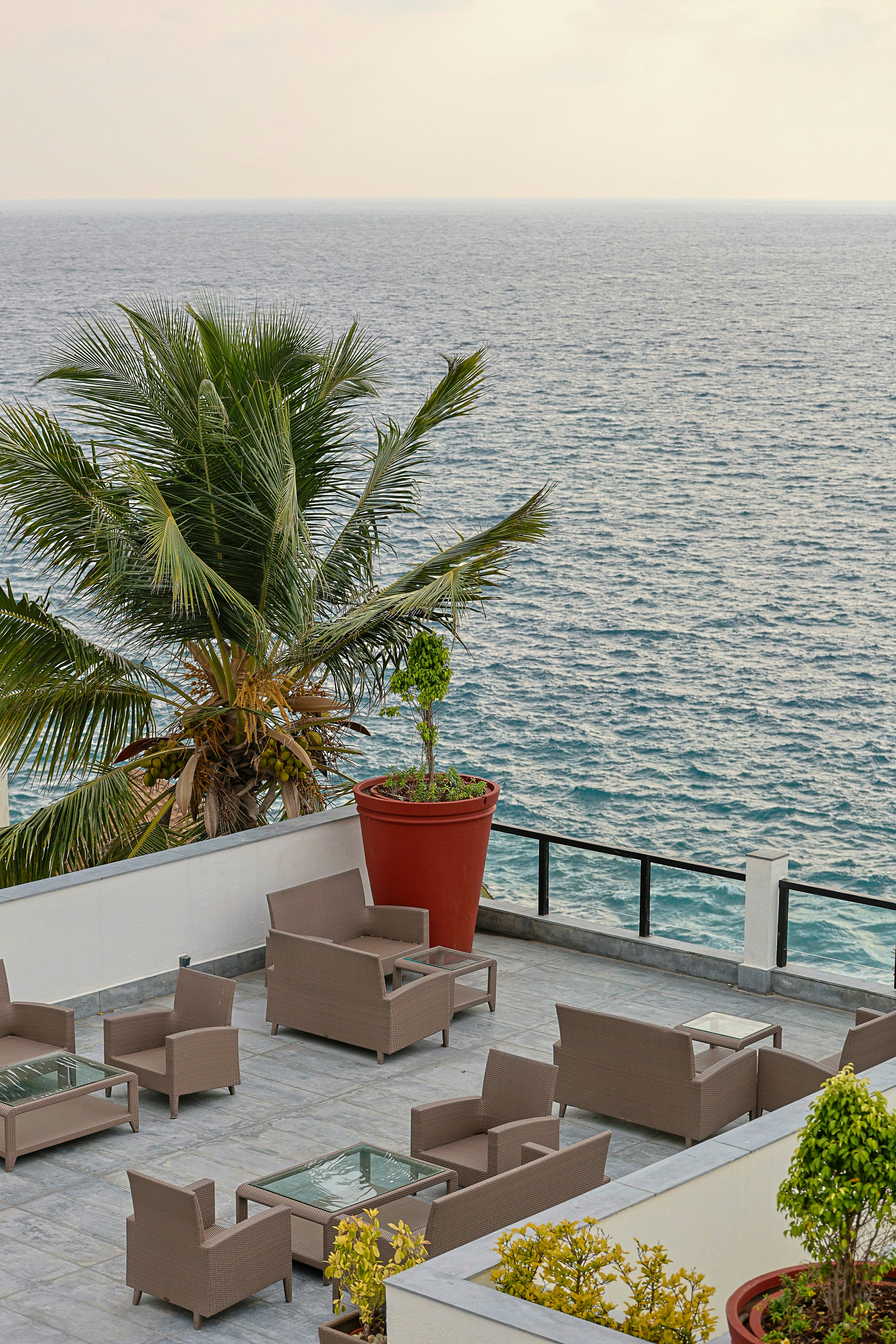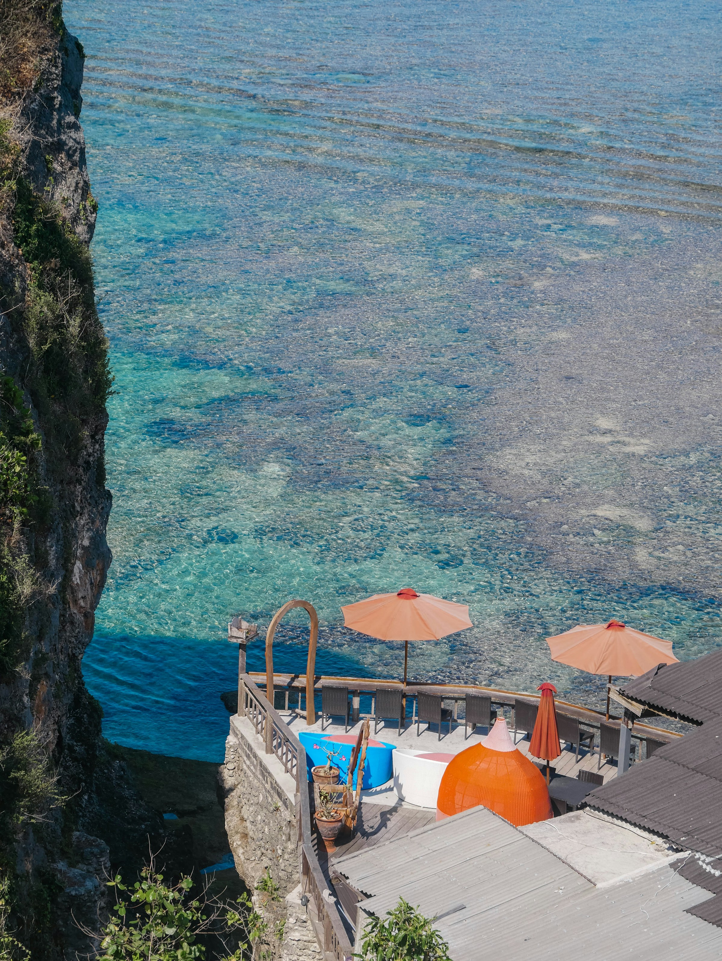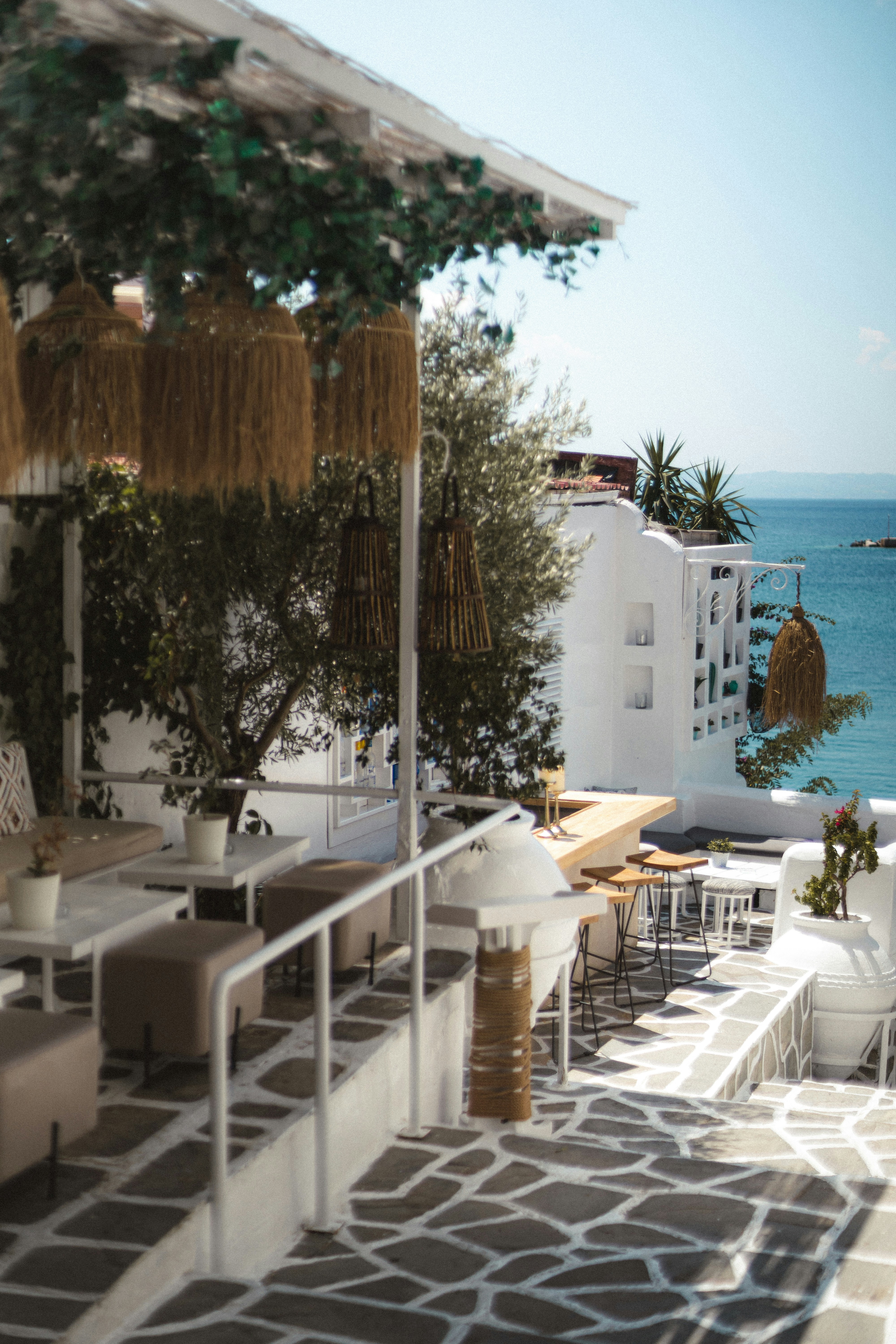 Clifftop terrace dining above the Mediterranean — extraordinary fresh seafood sourced daily from local fishermen.
